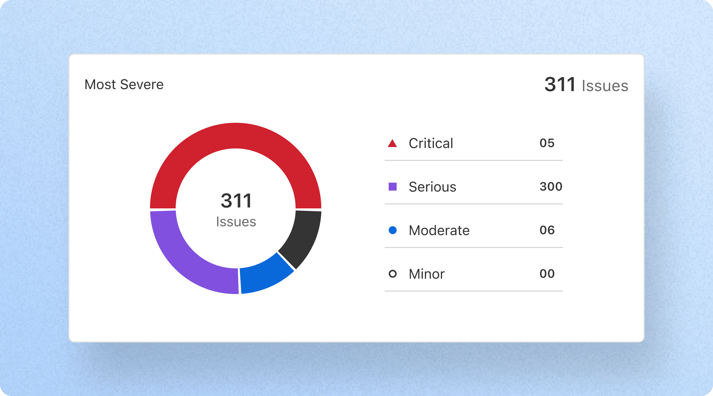 Automatically group, classify, and prioritize accessibility issues, enabling teams to focus on high-impact fixes first.