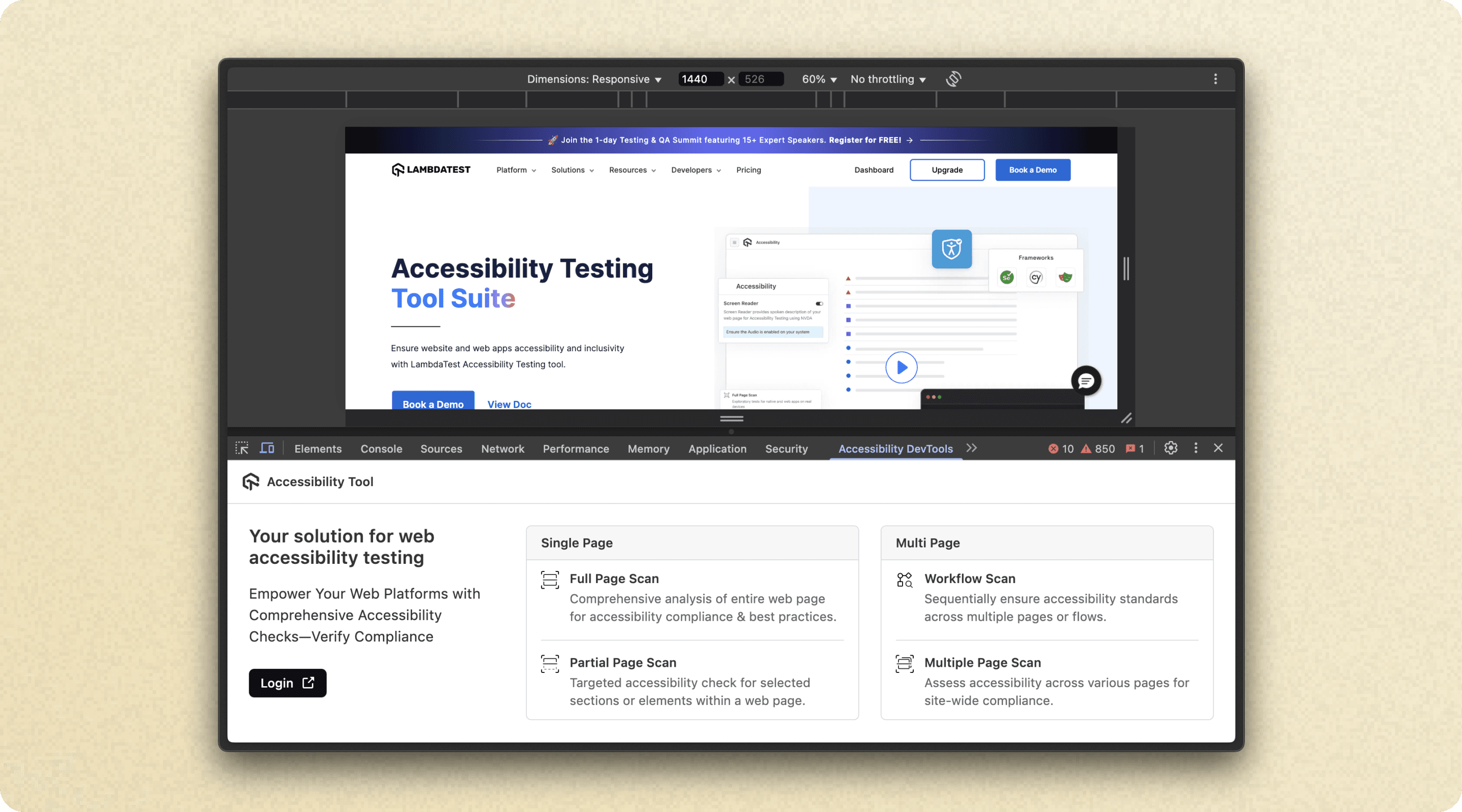 Designed a system where QA teams could add a simple hook, letting LambdaTest handle accessibility testing in the background.