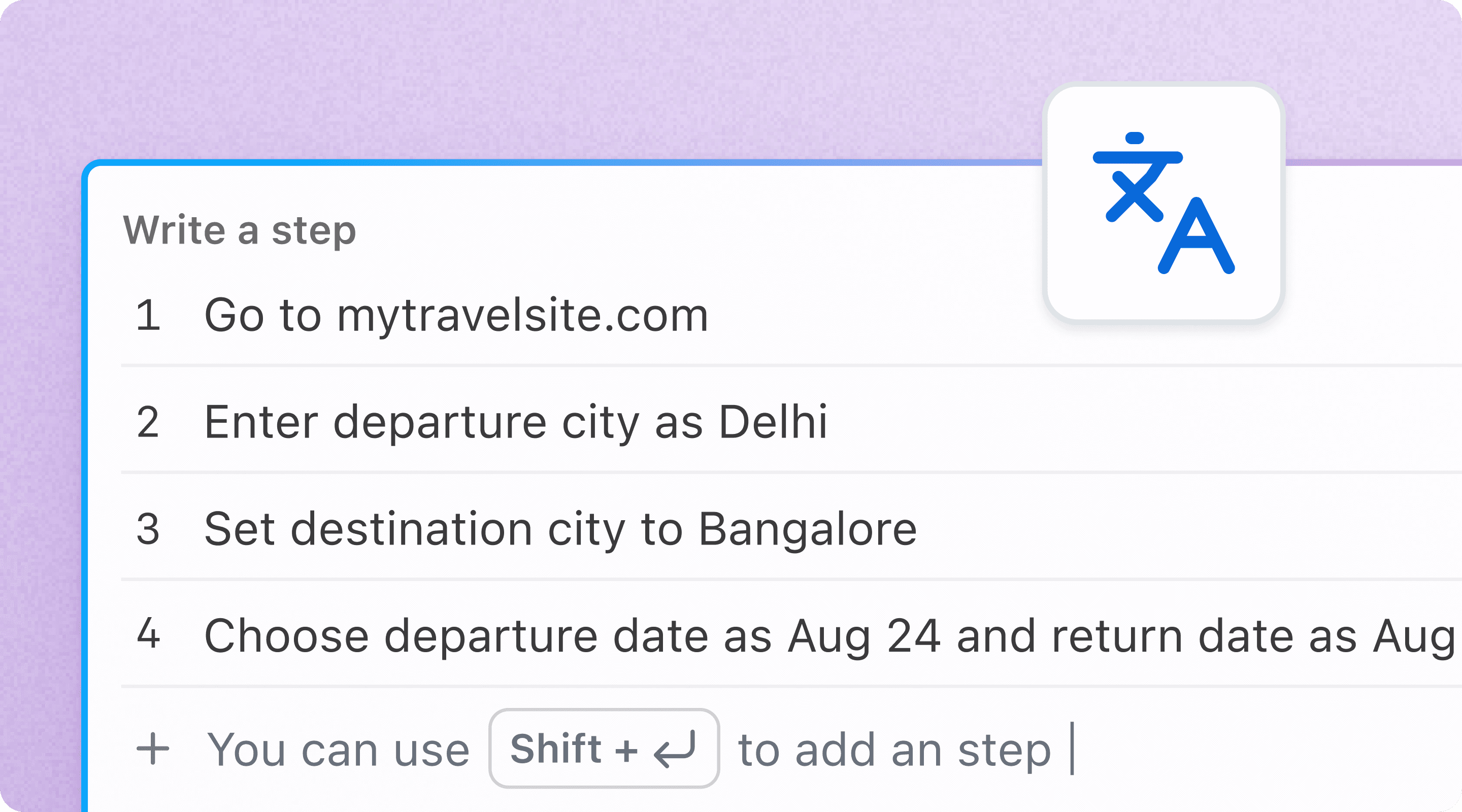 Write test scenarios in plain English, and Kane AI will automatically generate the steps for you.